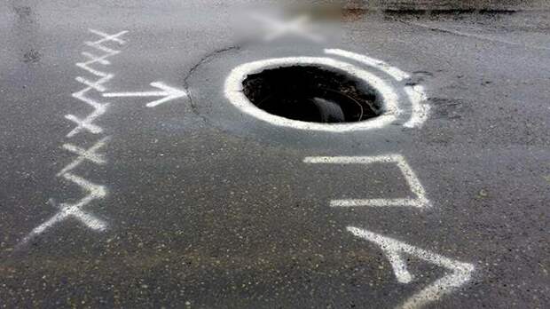 Таким образом, проблемный участок дороги украсило слово "*опа".Автомобилисты даже стали притормаживать, чтобы сфотографировать инсталляцию, отражающую суровую дорожную действительность России.
