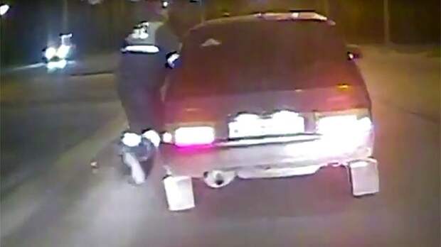 Пьяный водитель протащил инспектора ДПС по дороге за руку полкилометра.
