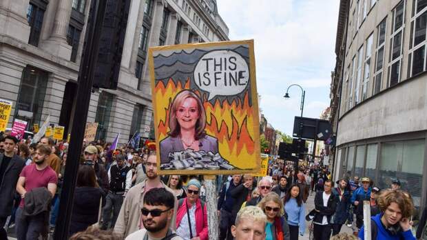 На фоне жесточайшего кризиса по Британии прокатилась волна митингов и протестов. Тысячи местных жителей собрались в центре Лондона. Активисты жгли коммунальные счета, требуя "экстренного реагирования на климат и кризис стоимости жизни".