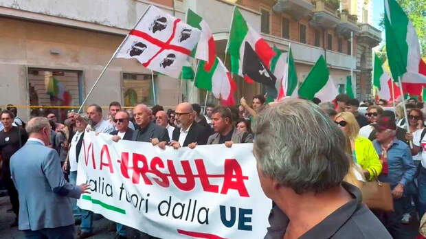 Шествие против политики Евросоюза прошло по центральным улицам Рима. На марше собралось несколько тысяч человек с национальными флагами Италии, призывающих к отставке главы Еврокомиссии Урсулы фон дер Ляйен.