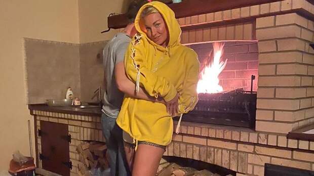 В кадре знаменитость позирует в домашней обстановке возле печи. Ее обнимает неизвестный мужчина, лица и фигуры которого не видно - он скрыл их за балериной.