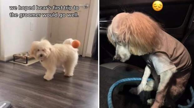Видео с результатом стрижки опубликовала блогер под ником yessieyass в TikTok. Она показала фотографии питомца породы голдендудль еще до процедуры и после нее.