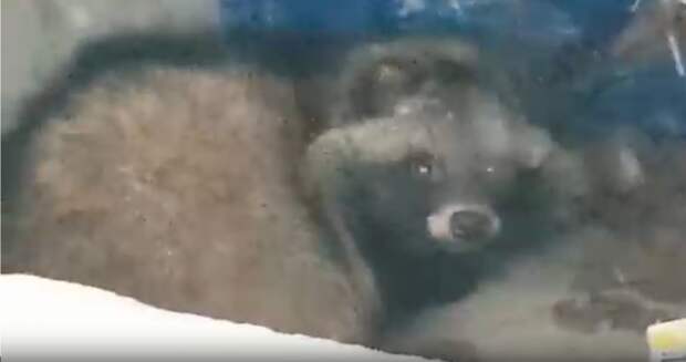 Очевидцы вызвали на помощь спасателей, которые смогли за несколько минут достать енота из подвала.