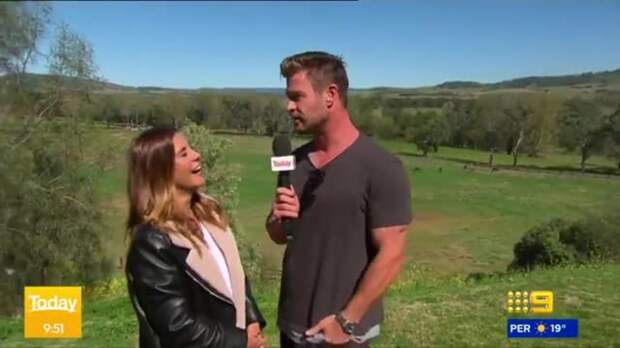 Австралийский актер Крис Хемсворт, известный по роли Тора из вселенной Marvel, внезапно ворвался в прямой эфир телеканала Nine, когда корреспондент рассказывала зрителям о погоде.