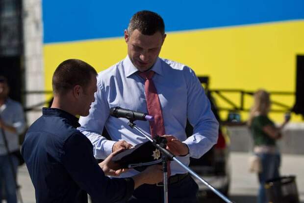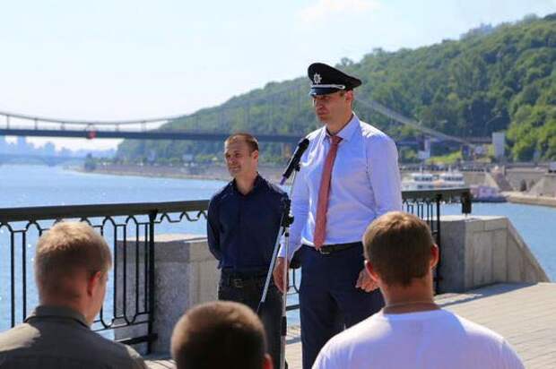 Фотографии были сделаны накануне днем на набережной возле Почтовой площади, когда Кличко провел неформальную встречу с руководителями полицейской академии Киева.