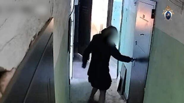 На кадрах видно, как подозреваемая подходит к квартире жертвы, а затем – когда языки пламени уже охватывают весь коридор – спокойно уходит к себе.
