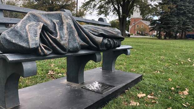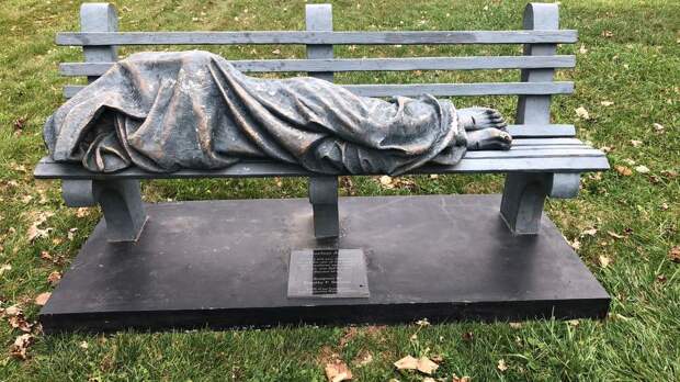 В США в полицию сообщили о спящем на скамейке бездомном, но он оказался скульптурной композицией с Иисусом Христом.