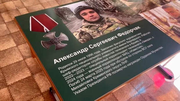 Ранее, 29 июля, в день рождения погибшего в зоне СВО военкора Федорчака открыли мемориальную доску на здании телерадиокомпании "Крым".