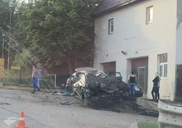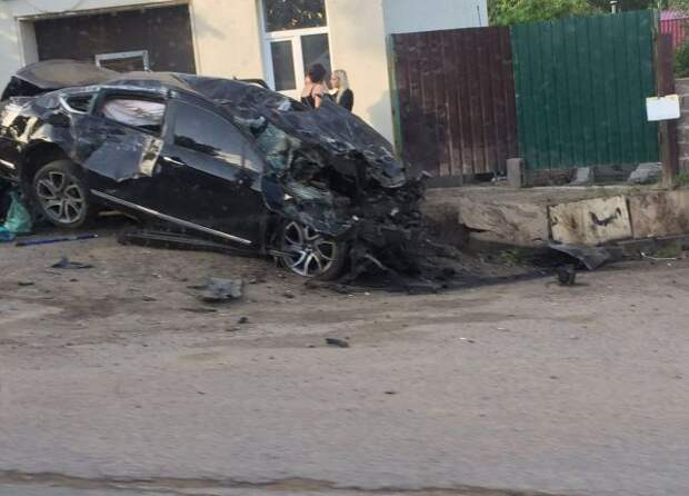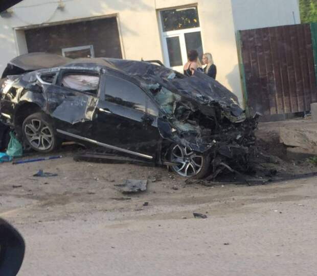 На фотографиях видно, что одна из иномарок, попавшая в ДТП, получила сильнейшие повреждения.