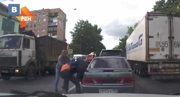 В подмосковном городе Клин подрались водители. Инцидент был снят на видео регистратором из проезжающего мимо автомобиля.