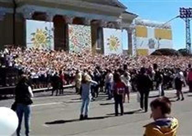 В начале второго (через два часа от начала стояния под прямым солнцем!!!) начали петь. После второй песни я увидела, как на последнем этаже (метра 2 от земли) стало плохо девочке. Она присела на корточки и стала вываливаться. Я закричала (стояла далеко от нее), к счастью, недалеко шла семья, и мужчина подбежал ее ловить. Слава Богу, поймал, она уже упала ему на руки, и понес к "скорой"…