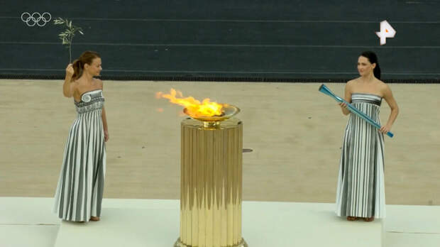Во время торжественной церемонии верховная жрица, роль которой исполнила известная греческая актриса Мэри Мина, передала олимпийский огонь первому факелоносцу – бронзовому призеру ОИ 2024 года по академической гребле Петросу Гайдатзису.