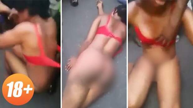 Толпа мужчин окружила женщину и насильно раздела ее, сопровождая этот жестокий "стриптиз" руганью и зуботычинами. При этом воровка пытается закрыть руками интимные места, однако линчеватели ей этого сделать не дают.В завершение несколько мужчин начинают буквально таскать девушку, на которой из одежды остался только изодранный купальник, по земле. В какой-то момент она, судя по всему, притворяется, что потеряла сознание. Тогда "палачи" на миг оставляют ее в покое. Однако, как только выясняется, что обморок женщины - блеф - наказание продолжается.