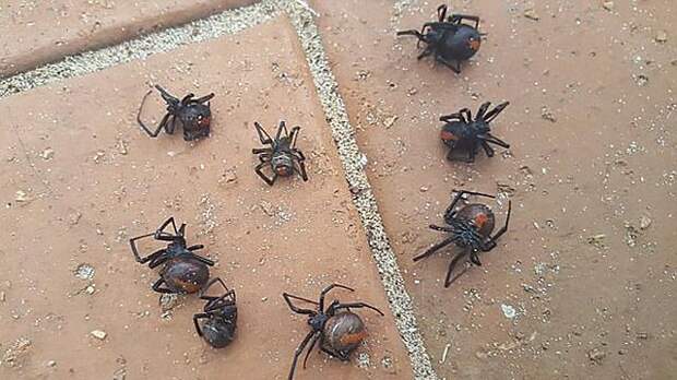 Жительница Австралии выложила в Сеть фото своего подоконника после дождя. На нем после ливня остались восемь ядовитых пауков вида австралийская вдова. Их укус очень болезненный и может привести к гибели.