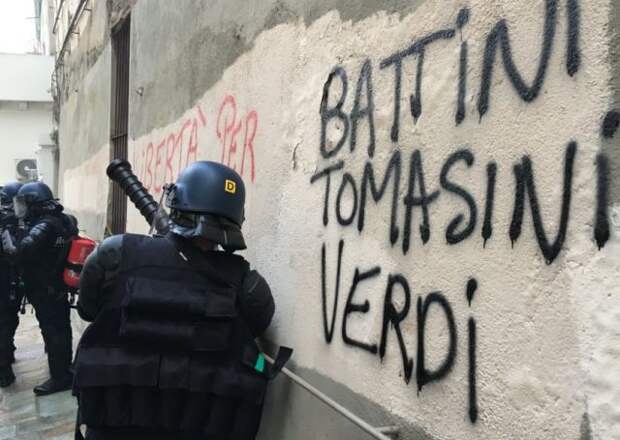 После окончания манифестации в знак протеста против приговора трем корсиканским националистам несколько человек начали забрасывать стражей порядка "коктейлями Молотова".