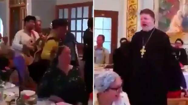 Ранее в Сети появилось видео, на котором священник в рясе поет "Мурку" в шикарном интерьере заведения, вокруг него накрытые столы, на стене картины с церковными мотивами.
