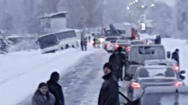 В ГУ МВД по Красноярскому краю заявили, что в автобусе находились 15 вахтовиков, никто не пострадал.