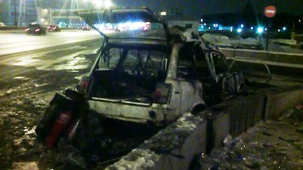 На кадрах видно, что от автомобиля остался только металлический корпус, вся начинка машины сгорела.