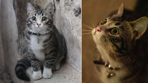 Год назад котенка нашел на улице настоятель Анненкирхе отец Евгений, дав ему имя Мартин Лютер Кот. У животного была кошачья чумка, но его удалось вылечить.