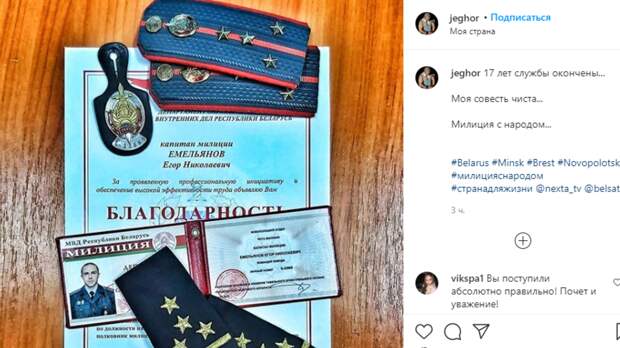 Один из капитанов милиции после 17 лет службы отказался выполнять обязанности и подал в отставку, опубликовав снимок с погонами, удостоверением и благодарностью от руководства МВД Белоруссии. При этом подлинность ряда роликов пока не была подтверждена.