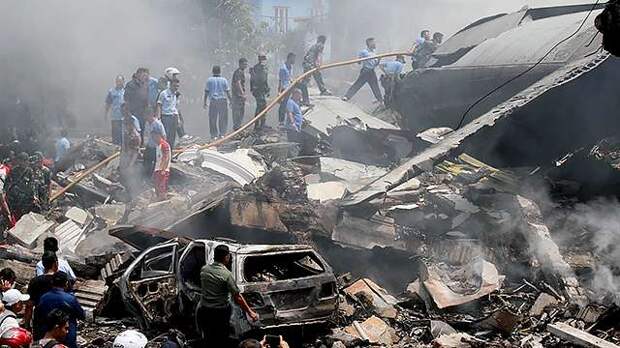 Военно-транспортный самолет Lockheed C-130 Hercules разбился вскоре после взлета. Он протаранил жилые дома и гостиницу. Трагедия произошла в городе Индонезии Медане, расположенном на острове Суматра.