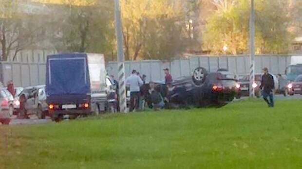Два автомобиля столкнулись на Нагатинской набережной, расположенной на юге Москвы. Как сообщает источник РЕН ТВ, при ДТП одна из машин перевернулась.