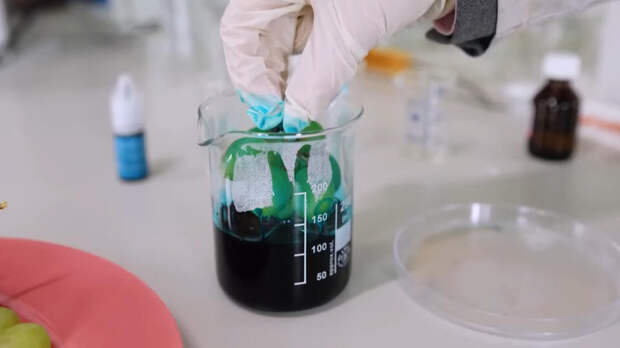 Никакой химии, только природные компоненты! Их всего два: пищевой желатин, который используют для загустения и хитозан – из панцирей ракообразных. Этот уникальный природный полимер работает как невидимый телохранитель – он безжалостно уничтожает опасные бактерии. Еда портится в два раза медленнее!"Материал является экологичным, поскольку материалы используемые являются биосовместимыми, биодеградируемыми материалами и широко используются и в пищевке, и в медицине. С продуктов его можно удалить просто мытьем при температуре 40 градусов и выше. Спокойненько под краном вы можете это вымыть", – добавила Майя Успенская.
