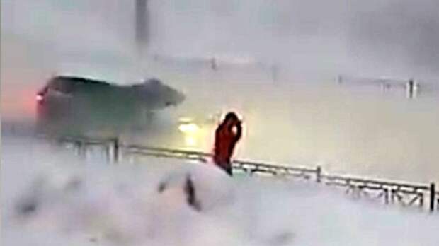 Видеорегистратор запечатлел, как на дороге из-за бушевавшей метели произошло ДТП.