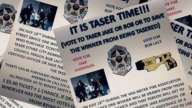 В американском городе Ван Метер, штат Айова, власти предложили жителям необычную лотерею. Главным призом лотереи станет возможность ударить электрошокером мэра города или представителя городской администрации, говорится на официальной странице города в Facebook.