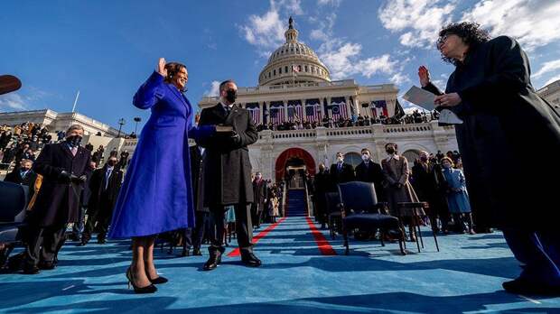 Первой на этой церемонии принесла присягу вице-президент Камала Харрис, сама биография и происхождение которой является символом неолиберализма и мультикультурности. Харрис стала первой женщиной вице-президентом, первой мулаткой - вице-президентом и первым вице-президентом азиатского происхождения. Когда на второй по значению пост страны приходит кандидат со столькими «впервые», это говорит о революционной перестройке системы.