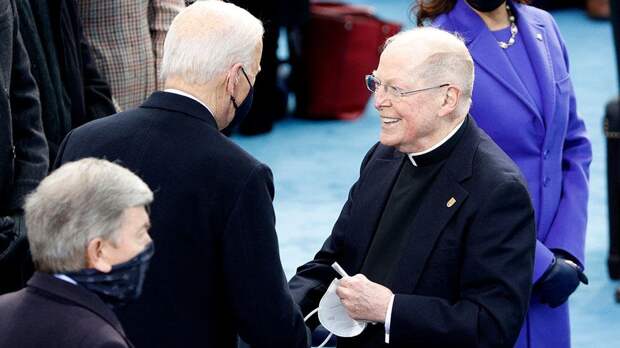 На инаугурации присутствовали и некоторые белые религиозно-общественные деятели, но такие, которые являлись большими сторонниками BLM, чем даже негритянские националисты. Например, на инаугурацию был приглашен Лео Иеремия О'Донован - католический клирик-иезуит, директор миссии иезуитов по беженцам, который многое сделал для растворения белых христиан США в потоке незаконных мигрантов, множащих там преступность и нагрузку на систему соцобеспечения. В этом качестве он противодействовал иммиграционной политике президента Дональда Трампа, который пытался хоть как-то ограничить этот поток.