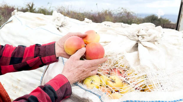 По его словам, в каждом мешке находится около 700 килограммов яблок, а общий объем продукции, направляемой на переработку, может превышать 20 тонн.