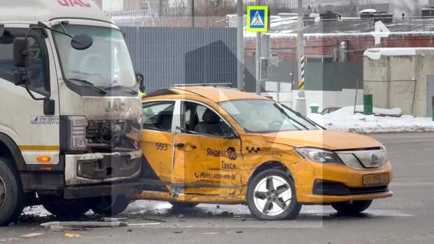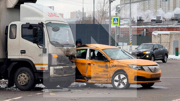 По словам собеседника, автомобиль такси столкнулся с грузовиком JAC в 1-м Котляковском переулке в Москве.