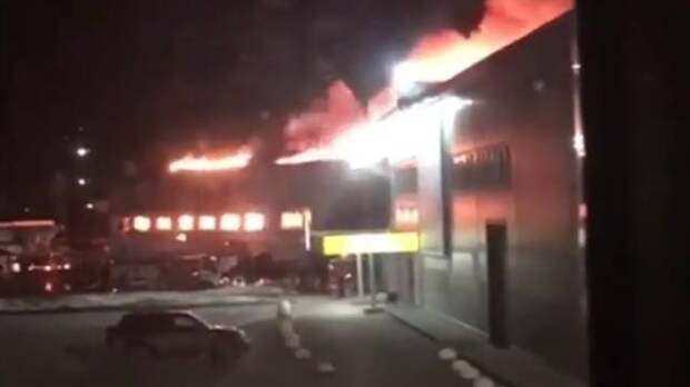 На кадрах видеозаписи видно, как языки пламени поднимаются над крышей здания.
