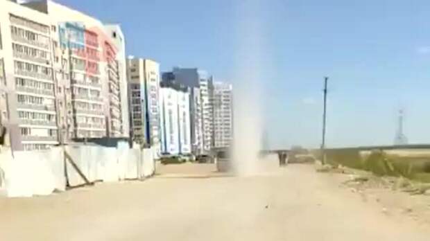 Жители Якутска засняли мини-торнадо, появившееся посреди дороги. Видеозапись была опубликована в Twitter.