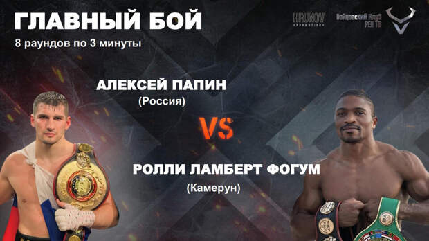 РЕН ТВ Новый турнир "Бойцовского клуба РЕН ТВ" состоится 28 ноября в Вологде на арене Дворца спорта "Вологда". В главном поединке сойдутся россиянин Алексей Папин и камерунец Ролли Ламберт Фогум. Формат – восемь раундов по три минуты.