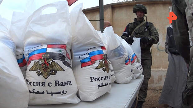 Кроме того, российские специалисты также участвуют в раздаче гуманитарной помощи. Прямо у входа в медпункт поселка местным жителям раздали 500 пакетов с продуктами первой необходимости.