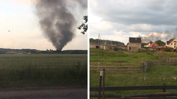 На кадрах, опубликованных в Сети, видно, как от места катастрофы поднимается густой черный дым.
