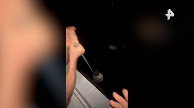 На кадрах видно, как мужчина сбрасывает ребенка на тросе за окно, а затем затягивает обратно в квартиру.