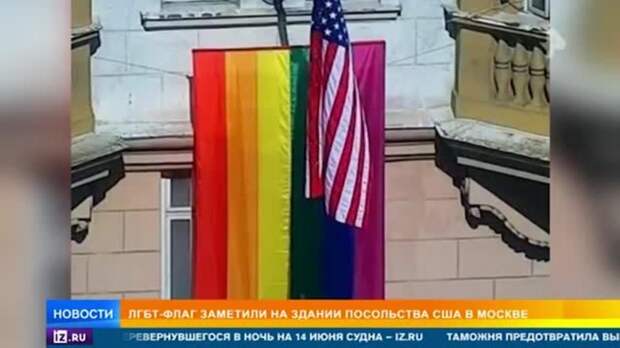 В МИД России отреагировали на поступок американских дипломатов, вывесивших ЛГБТ-флаг на здании посольства США в Москве. Ранее о символике представителей сексуальных меньшинств, вывешенной прямо под полотнищем Штатов, сообщили пользователи Сети. В посольстве США отметили РЕН ТВ, что июнь является так называемым "Pride Month" - месяцем парадов сексуальных меньшинств, когда по всему миру представители нетрадиционной ориентации пропагандируют терпимость к представителям своего сообщества.