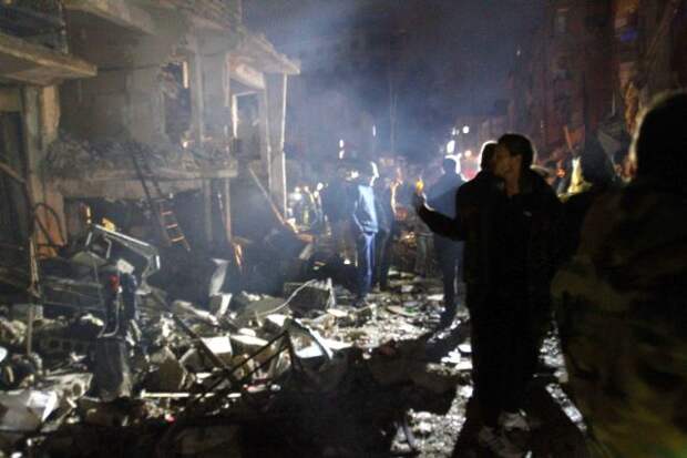 Вслед за этим в толпе два боевика-смертника привели в действие пояса со взрывчаткой.Несколькими часами ранее в городе Хомс боевики взорвали две заминированные машины. Теракты были устроены у въезда в армянский квартал.