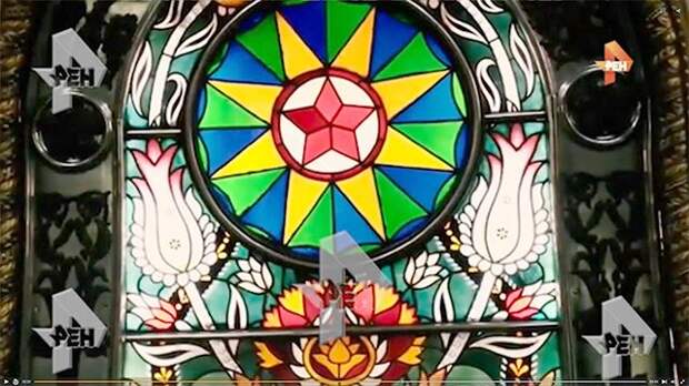 Вандал разбил оригинальный витраж на станции метро "Новослободская". На витраже отчетливо видны трещины.