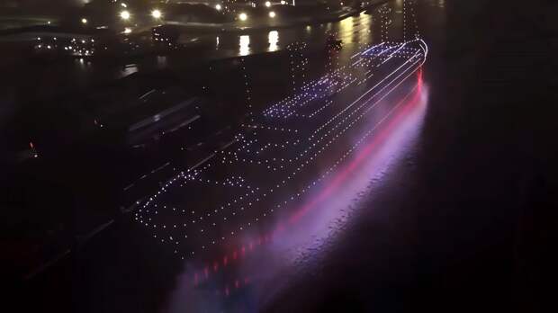 В Британии воспроизвели момент схода корабля с верфи в Белфасте ровно спустя 114 лет. Только на этот раз из гавани вышло не настоящее судно, а лишь его светящиеся контуры.