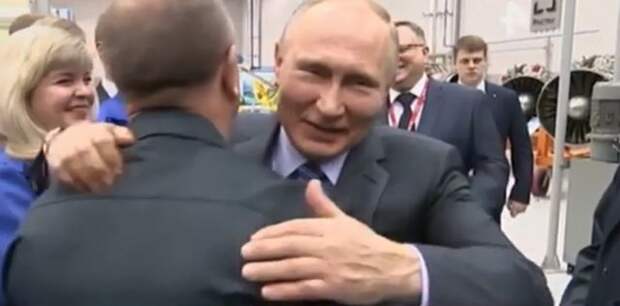 Российский лидер Владимир Путин обнял рабочего Уфимского моторостроительного производственного объединения ("ОДК — УМПО"), спросившего, возможно ли вернуть практику награждения предприятий памятными знаками.