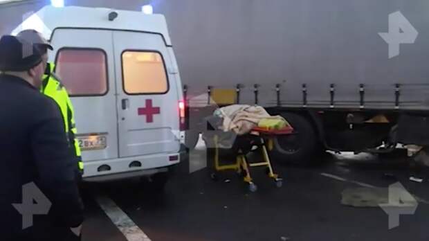 В распоряжении РЕН ТВ появились кадры с места аварии, на которых видно, что столкнулись сразу два автобуса и грузовик. От удара в одном из автобусов выбило лобовое стекло.