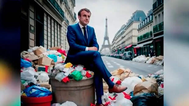Скриншот видео В ответ в соцсетях запустили мемы про Макрона, который сидит на горе из мусора, но не замечает их. Именно глава Франции активно продвигал скандальный законопроект. Ожидается, что закон окончательно примут 16 марта, и теперь Франция вновь полыхает протестами.