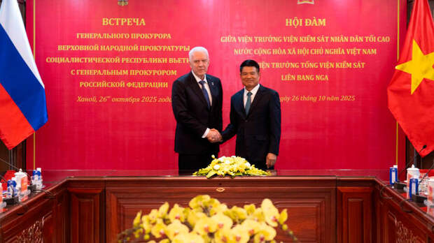 Генеральный прокурор РФ Александр Гуцан в рамках второго дня рабочего визита в Ханой провел переговоры со своим вьетнамским коллегой Нгуен Хюи Тиеном. Об этом сообщили 26 октября в пресс-службе российского надзорного ведомства.