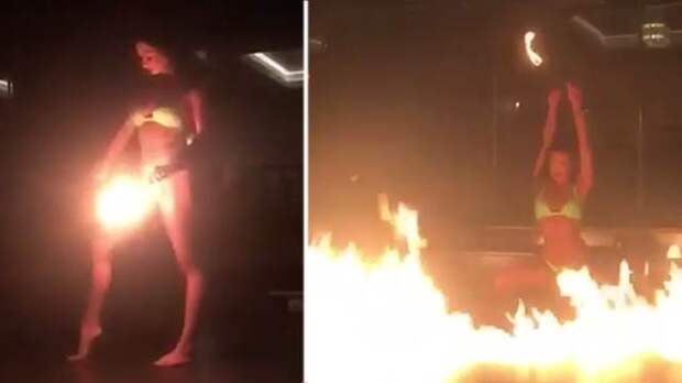 На кадрах видно, что девушке удалось создать вокруг себя огненное кольцо. Несмотря на то, что сработала пожарная сигнализация, Харли продолжила танцевать.