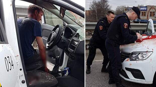 "Приблизившись, стражи правопорядка увидели автомобиль такси и рядом с ним раненого человека, взывавшего о помощи. На капоте такси неизвестный, разбив ногами лобовое стекло, пытался проникнуть в автомобиль, в салоне которого находился раненый водитель", — говорится в сообщении пресс-службы.