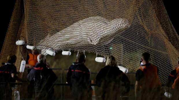 Кита обнаружили в Сене на прошлой неделе на севере Франции, после чего специалисты начали разрабатывать план, как безопасно извлечь животное из реки и доставить в привычный ареал обитания.